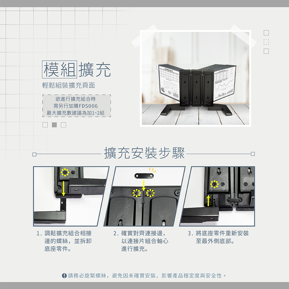 欲進行擴充組合時,需另行加購FDS006,最大擴充數建議為加1~2組