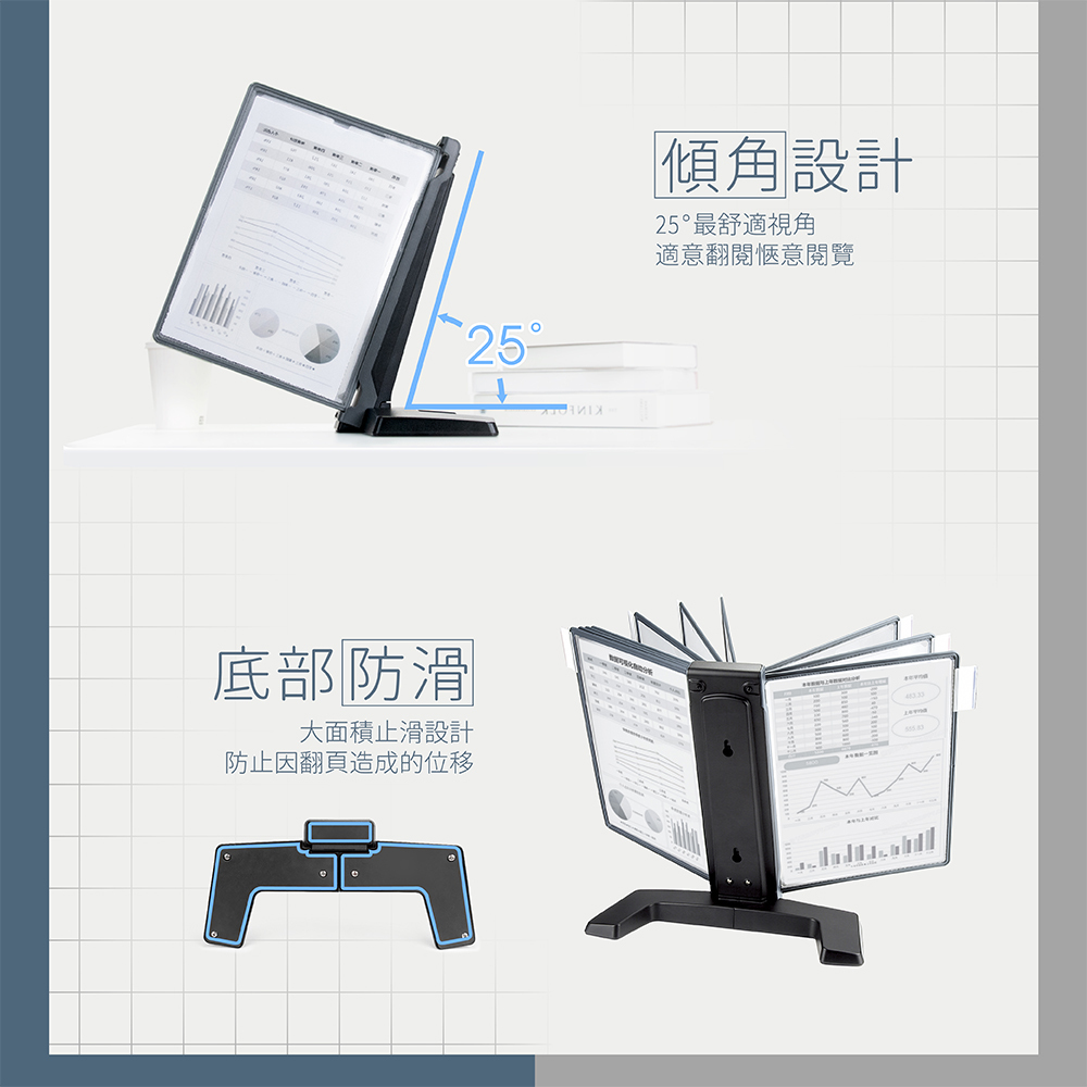 ★底座採防滑式設計,重心穩定,翻閱資料便利