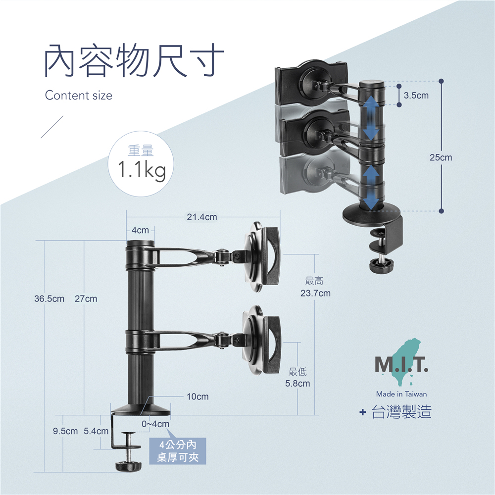 最大夾距:(5001-U)20~24 cm (7001-U)13~17.8 cm