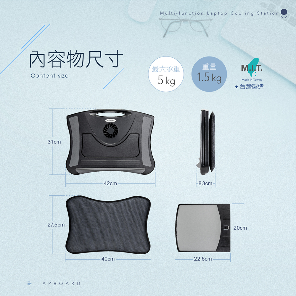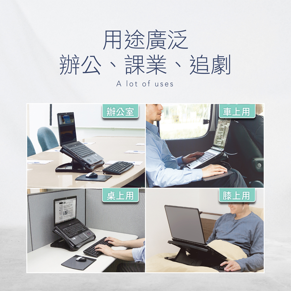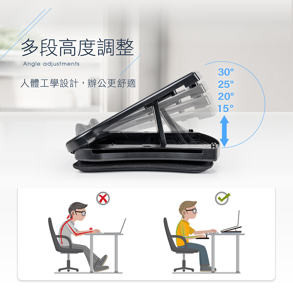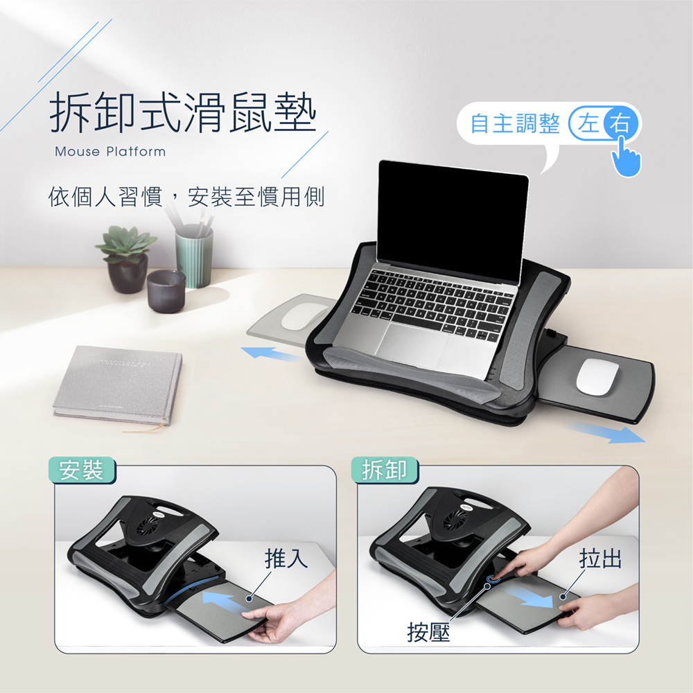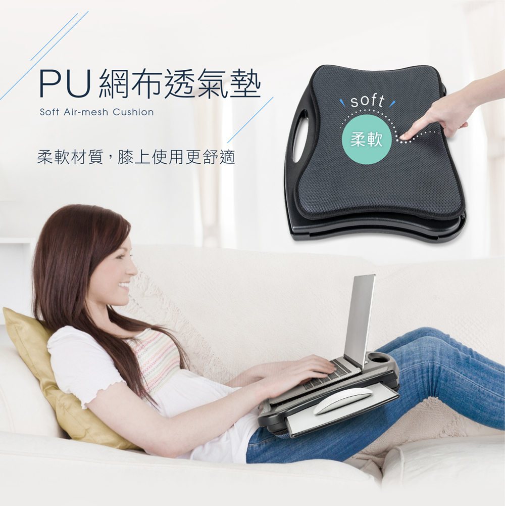 ★產品底部:柔軟PU網布透氣墊,方便將筆電架放置腿上舒適地使用