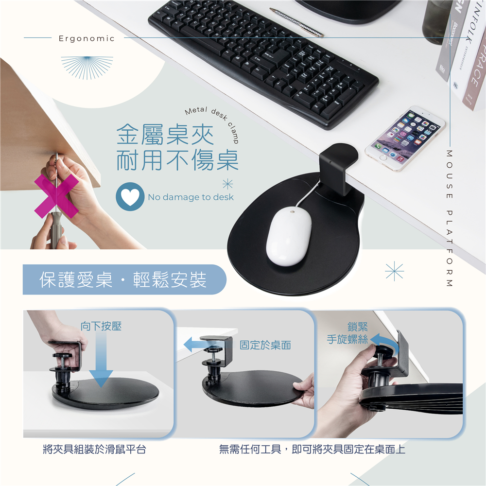 1. 請實際測量桌板厚度,確認厚度在桌夾最大夾距範圍內再行購買