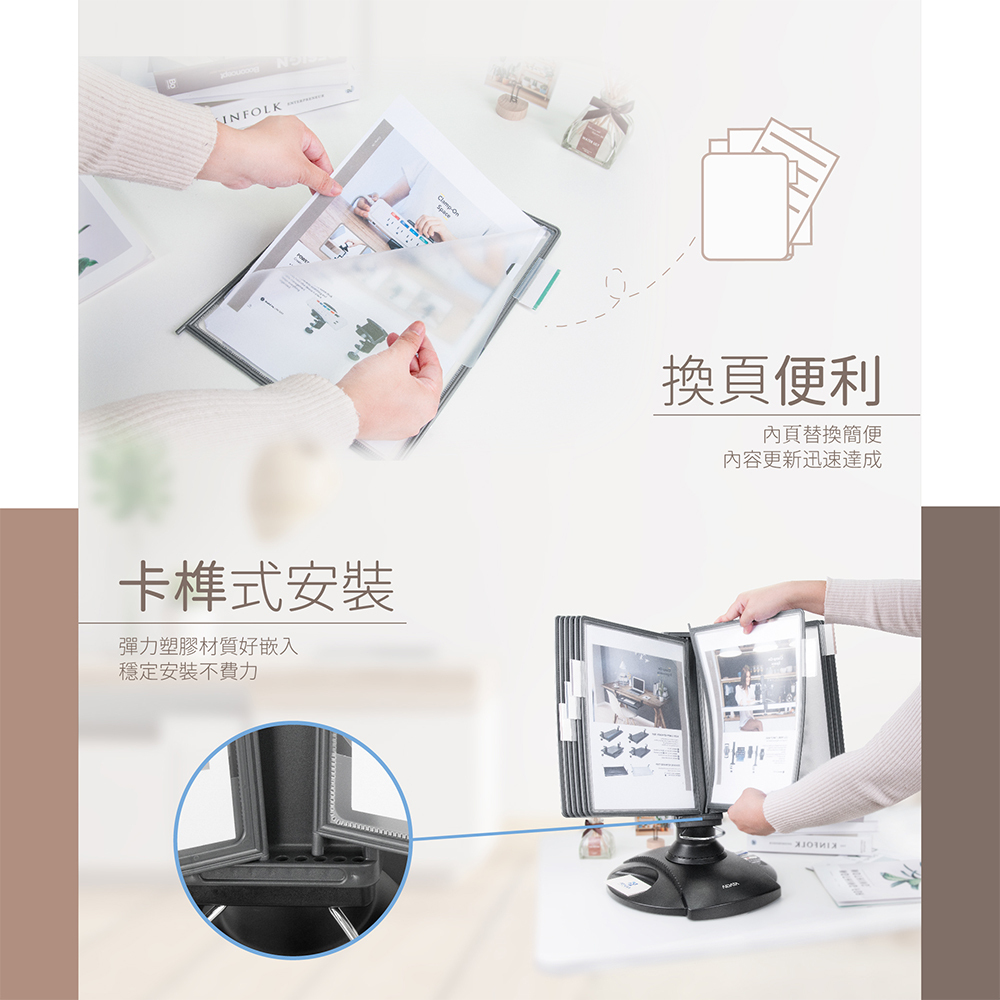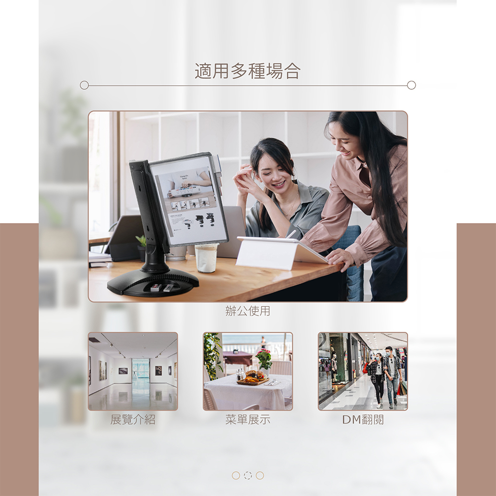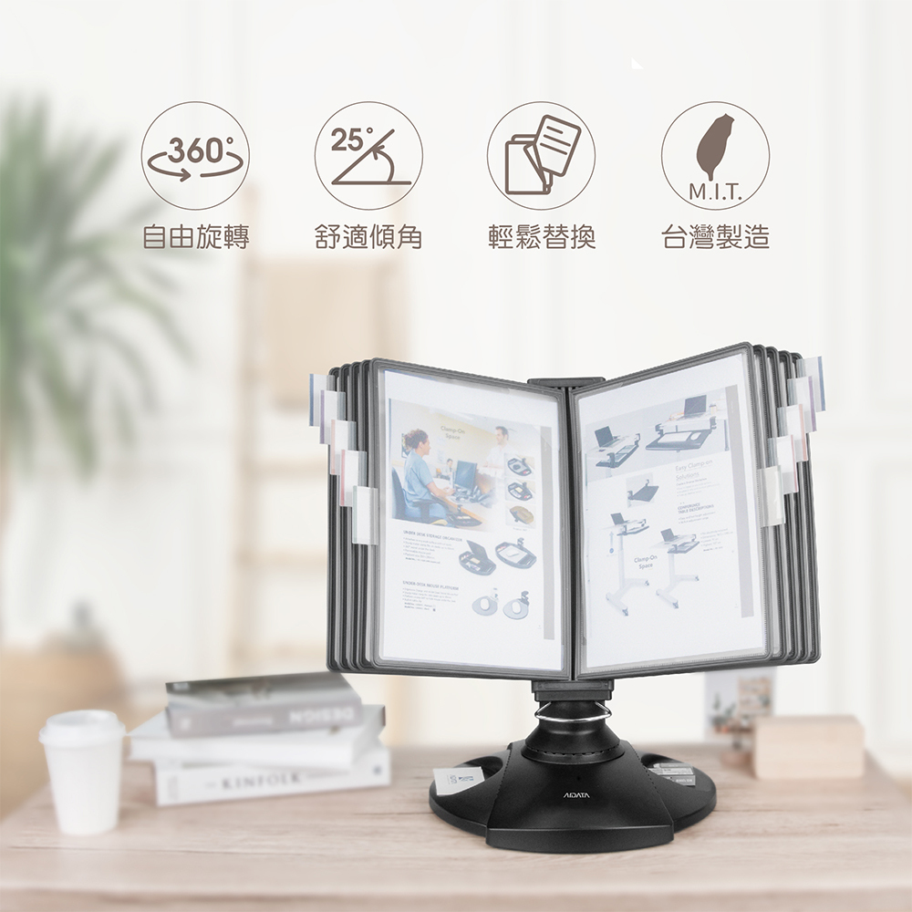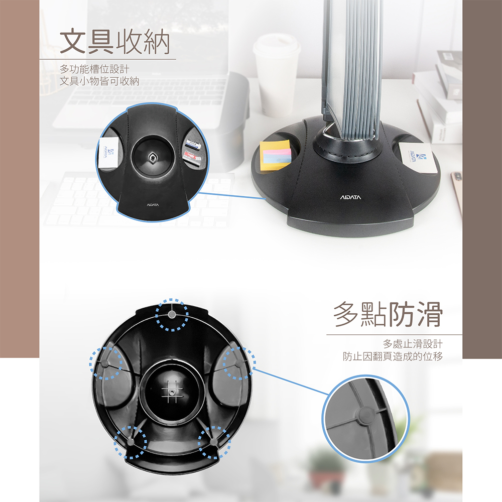 ★底座採防滑式設計,重心穩定,翻閱資料便利