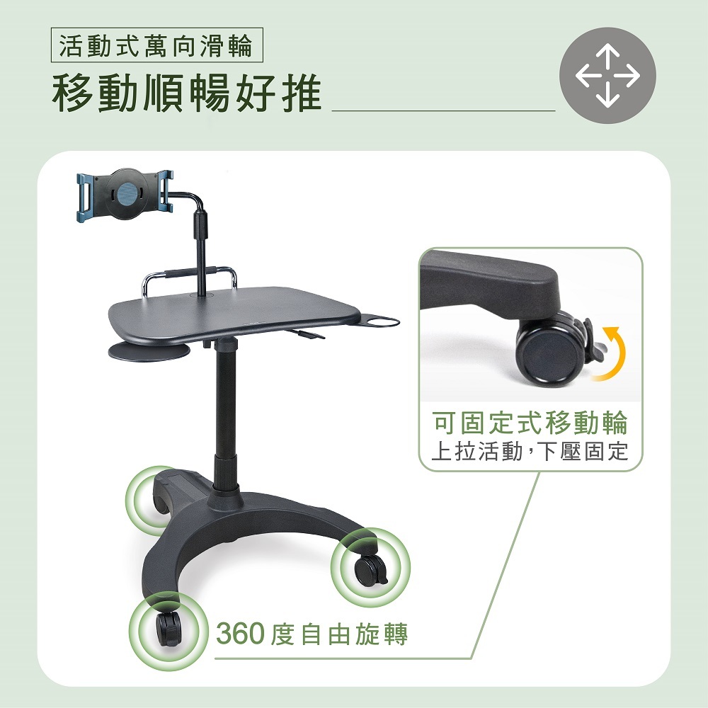 ◆ 底座為三個萬向鎖定腳輪,自由好移動