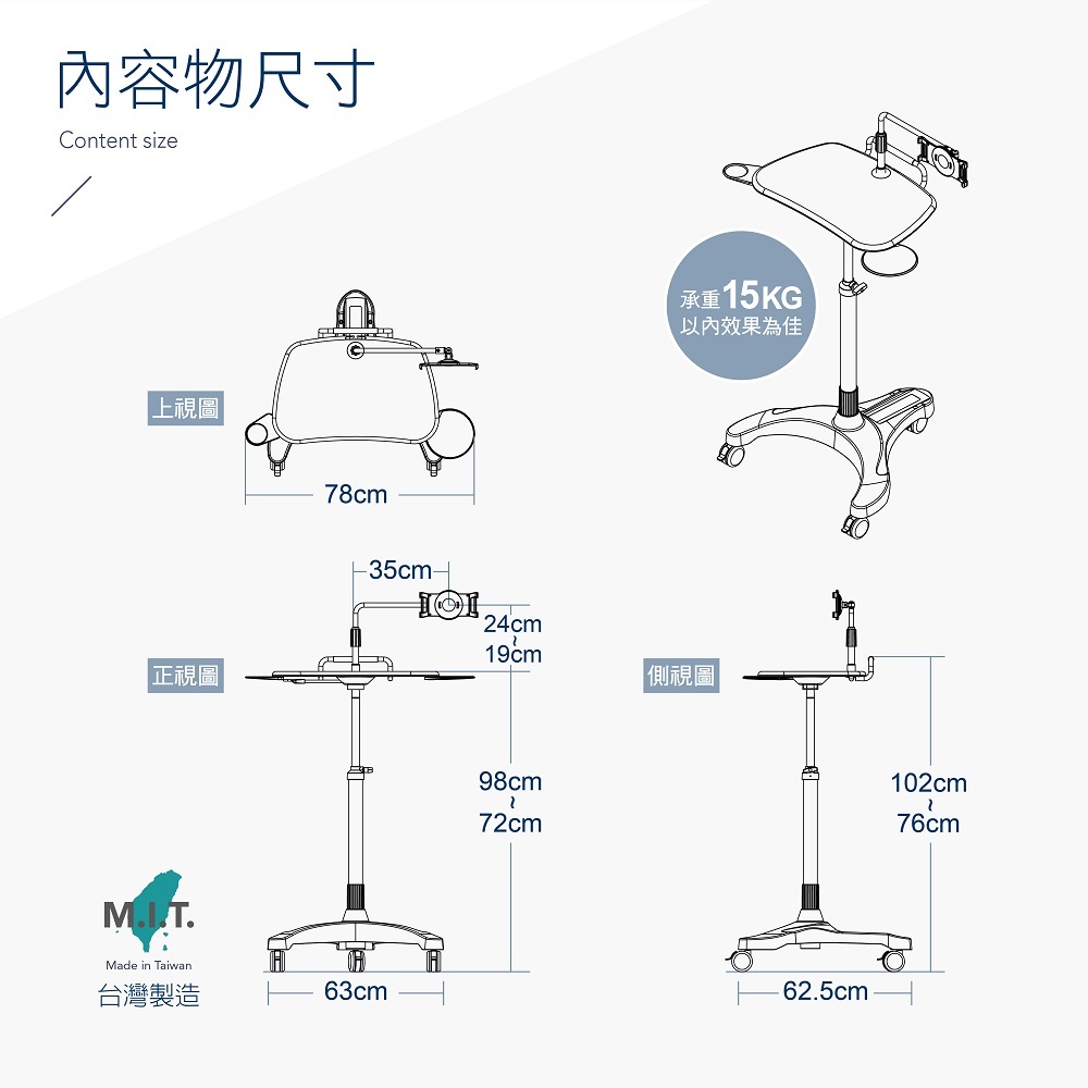◆ 筆電平台尺寸:60x38.5 CM (17吋以下筆電)
