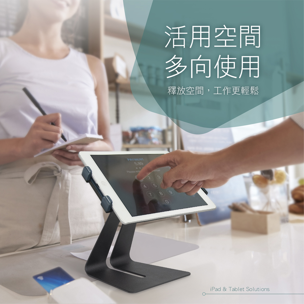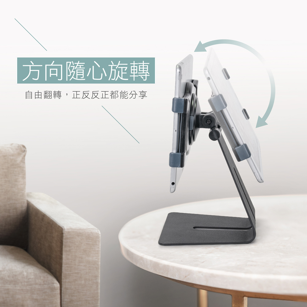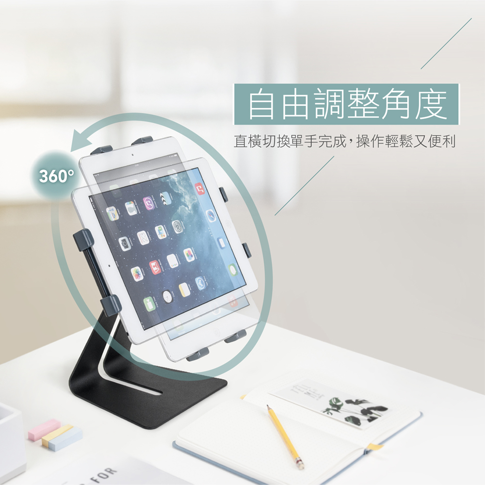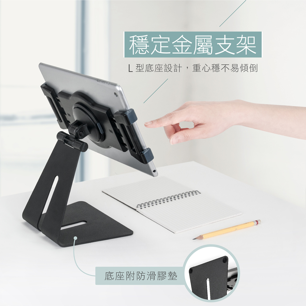 ★輕鬆將平板電腦,安置於專利環型支撐座,輕鬆拆裝,靈活運用度