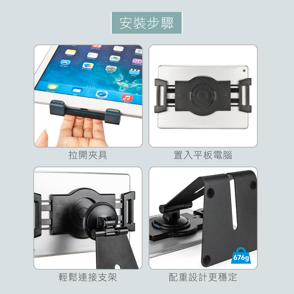 ★平板電腦能快速和環型支撐架做連結,裝卸簡單,安全堅固