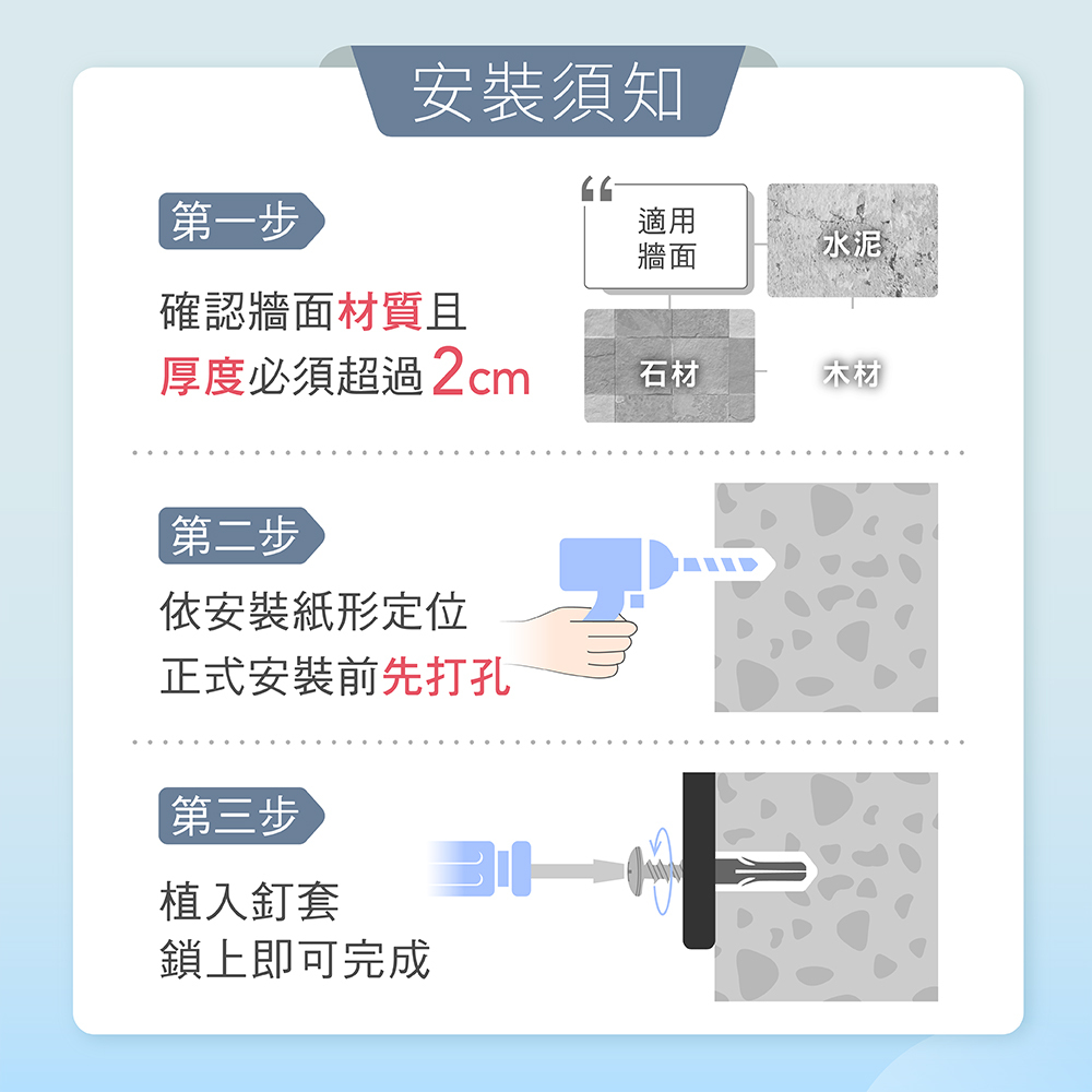 ★貼心附贈螺絲釘配件工具組,可輕鬆懸掛壁上