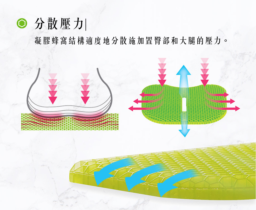 蜂巢雙層支撐結構分散壓力。
