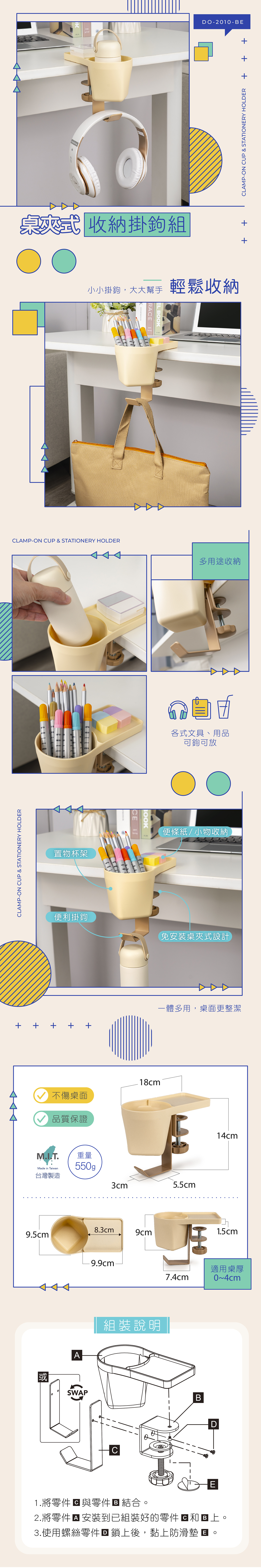 4. 以螺絲組合桌夾與收納器時,請勿過分施力,造成螺紋“崩牙”的狀況發生