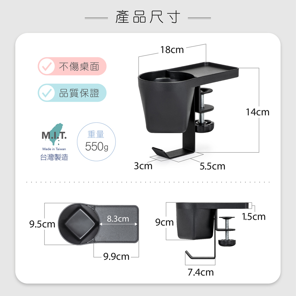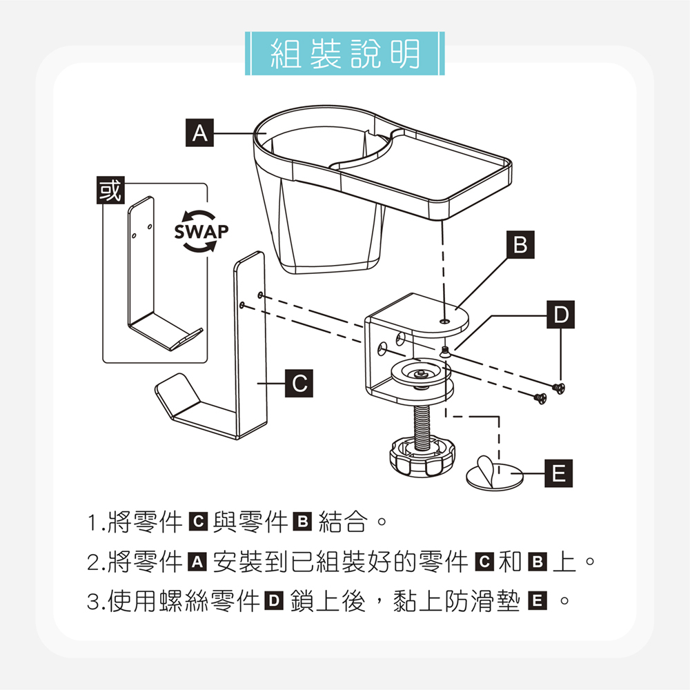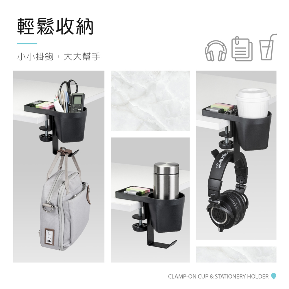 塑膠杯架、桌夾、收納盒、螺絲包
