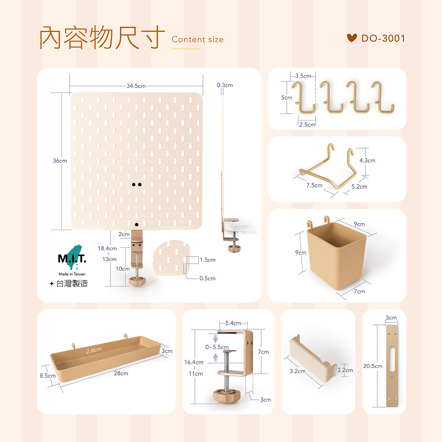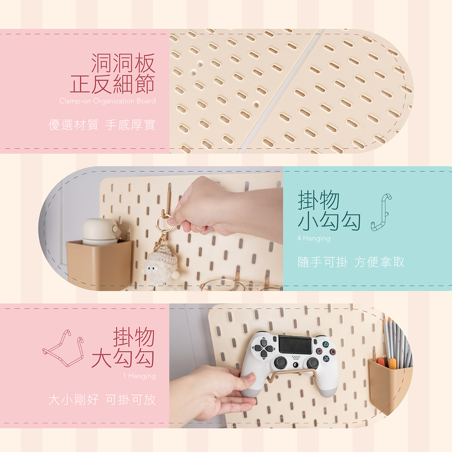 洞洞板、桌夾、掛鉤包、螺絲包、長型置物盒、方型收納盒