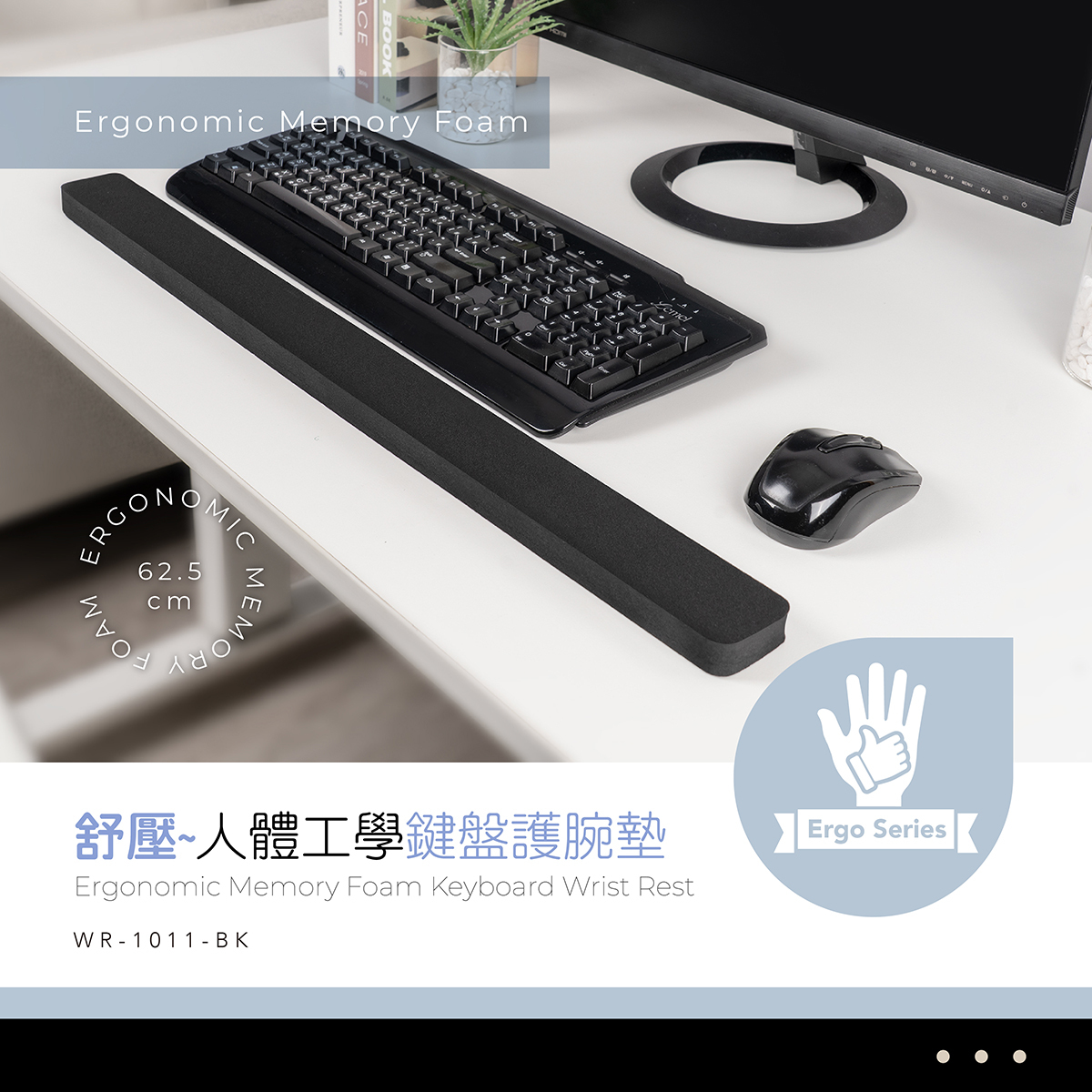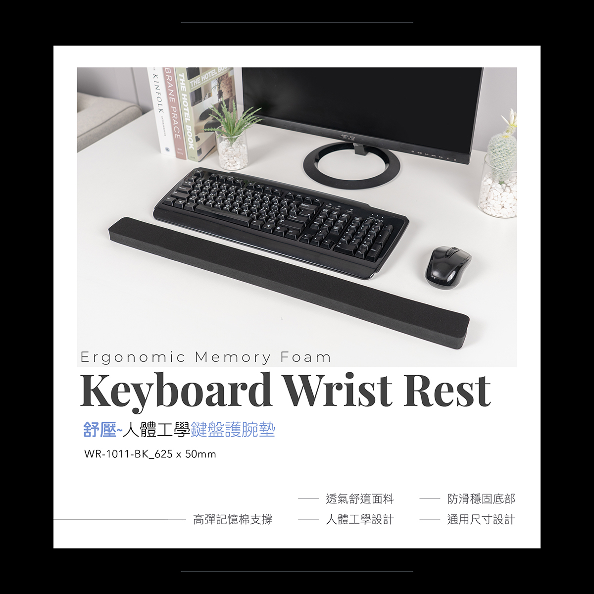 舒壓人體工學鍵盤護腕墊 / 62.5x5cm WR-1011-BK
