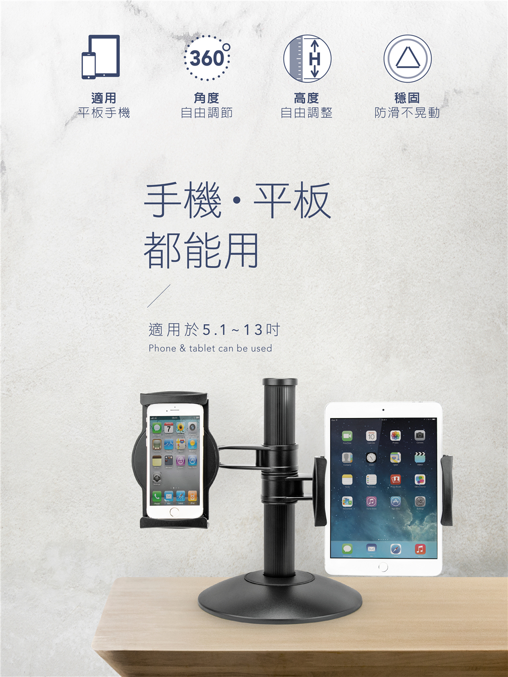 ★輕鬆將手機或平板電腦,安置於專利環型支撐座