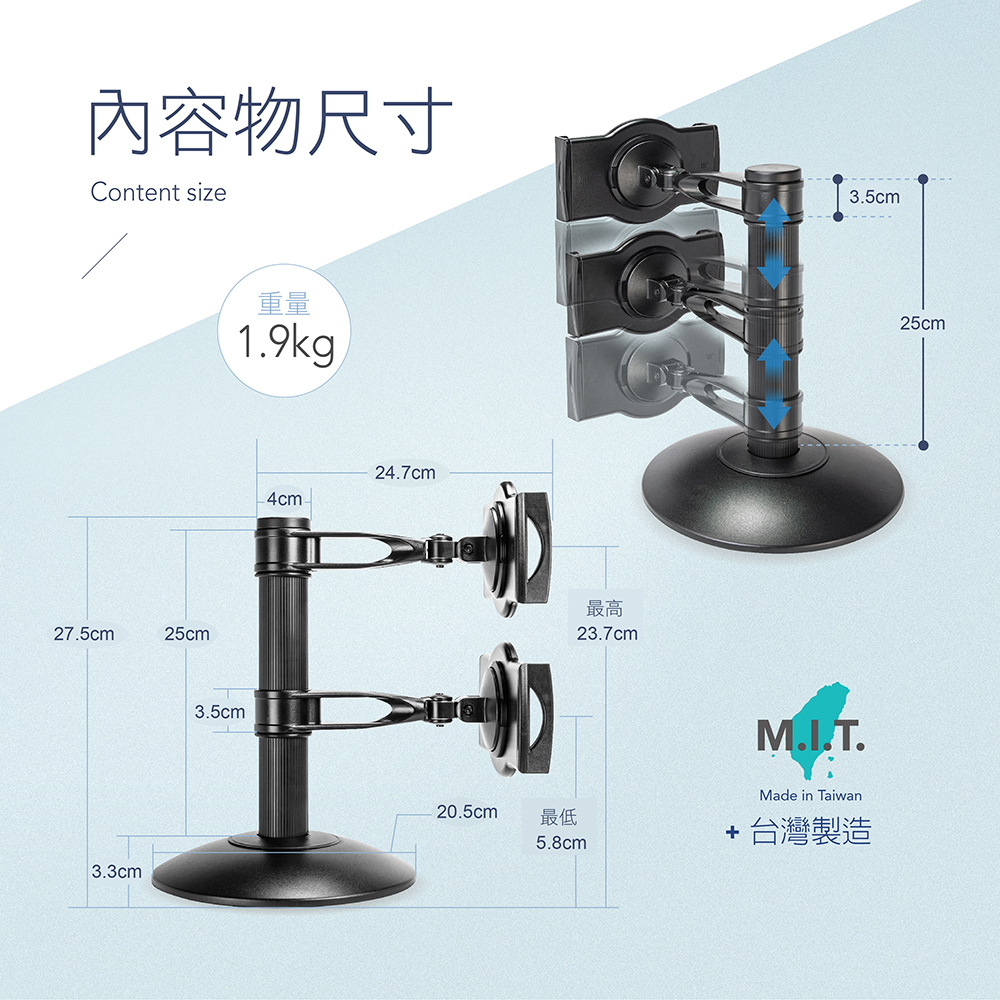 最大夾距:(5001-U)20~24 cm (7001-U)13~17.8 cm