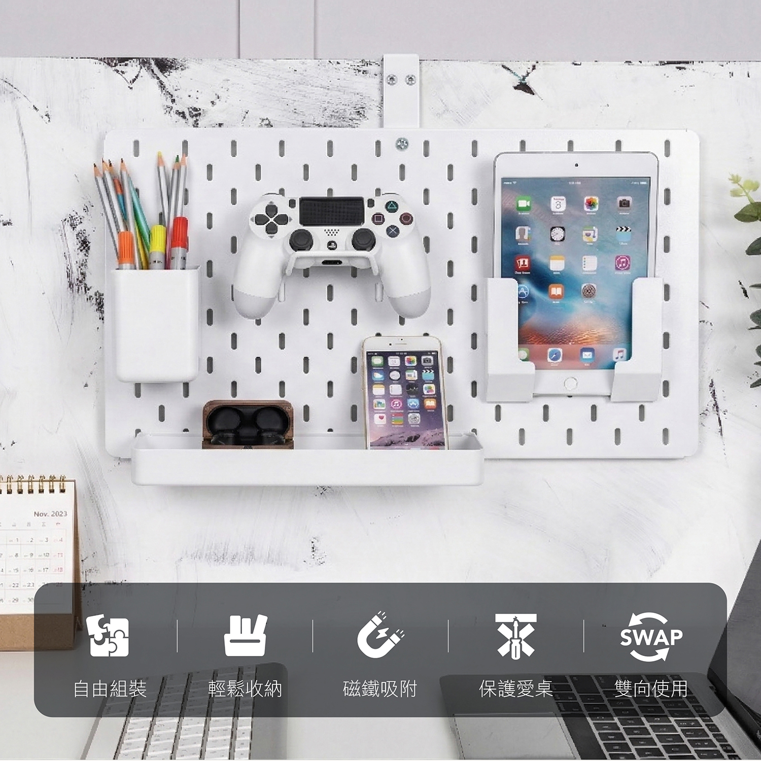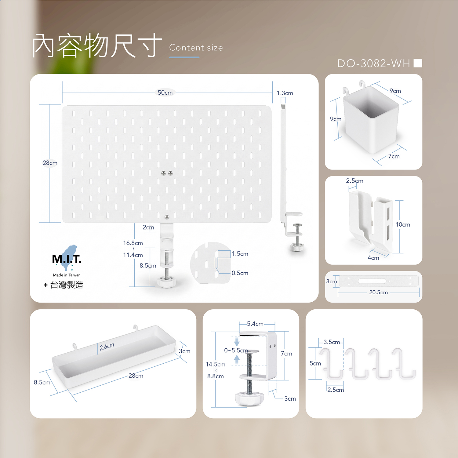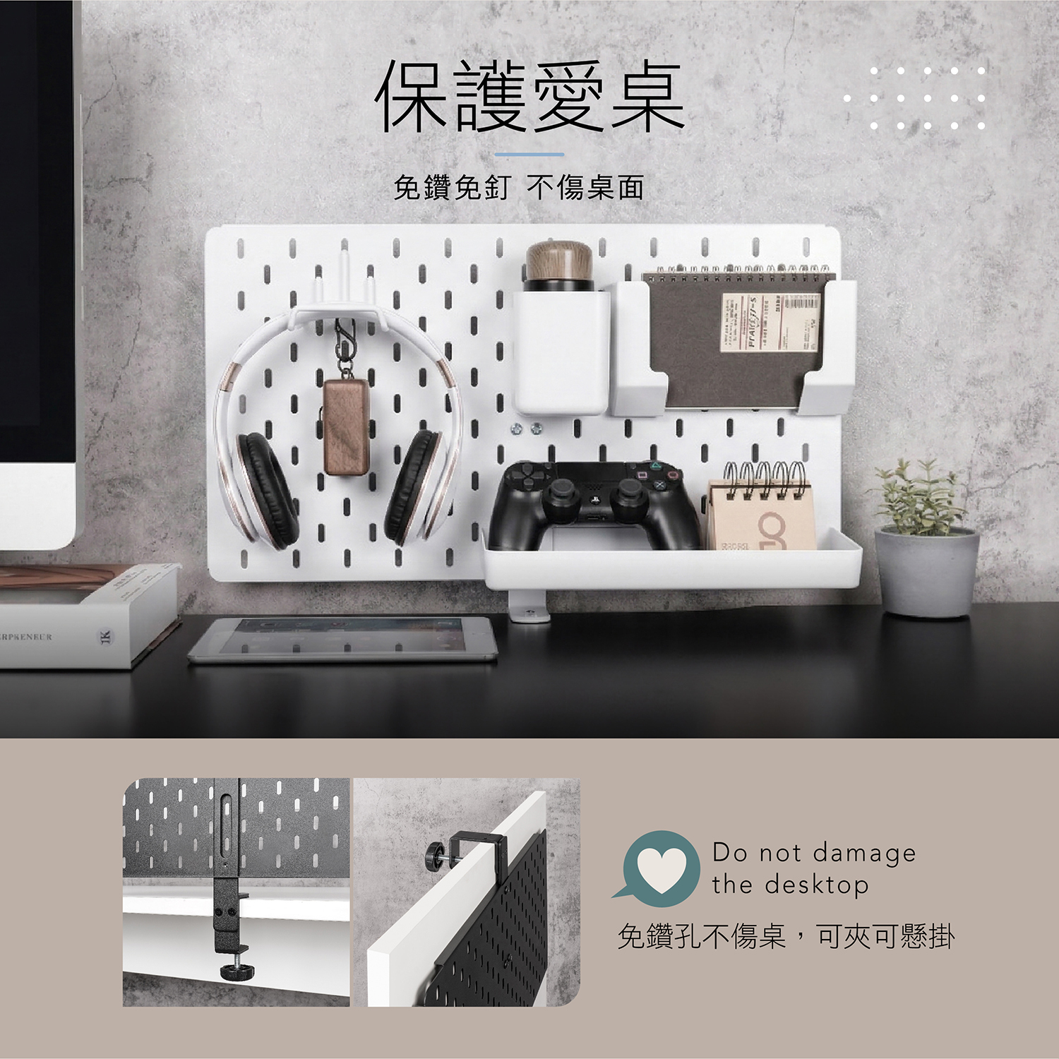 桌夾式鐵製收納洞洞板 附專用收納配件9件組 適配宜家 DO-3082-WH-AID